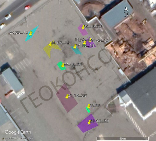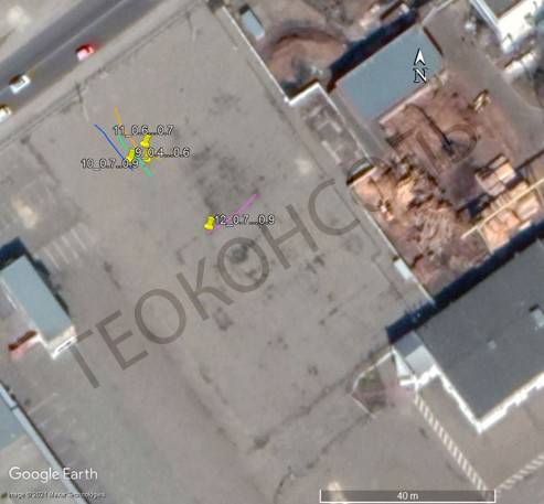 Позначення на карті Google Earth виявлених зон розущільненого ґрунту та комунікацій